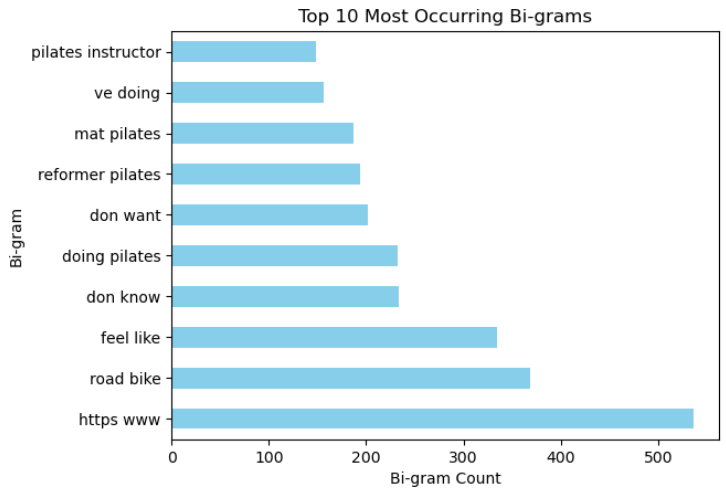 • Collected 7,000+ articles from the r/pilates and r/cycling subreddits using the Reddit API.